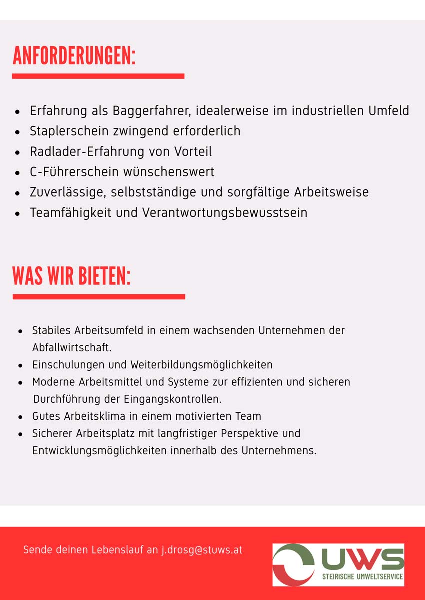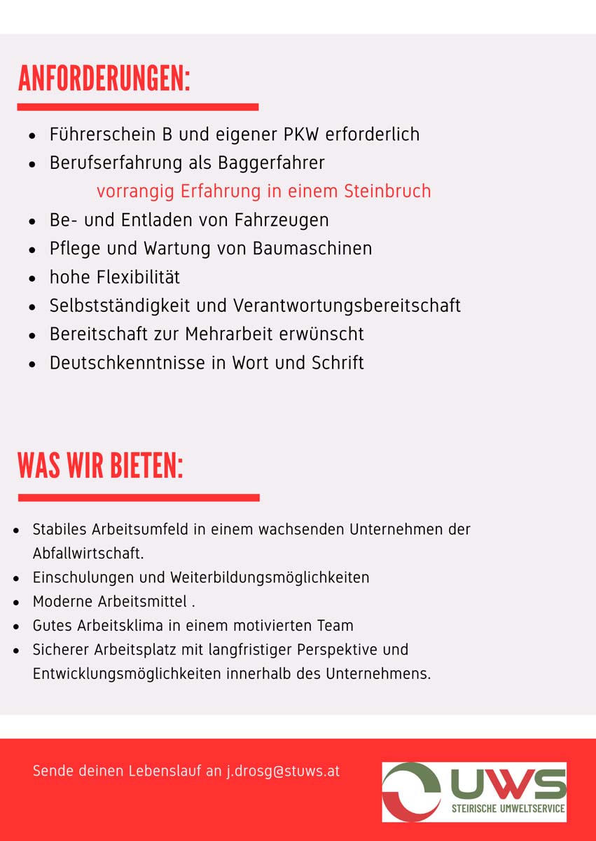 Industriebaggerfahrer Bruck an der Mur